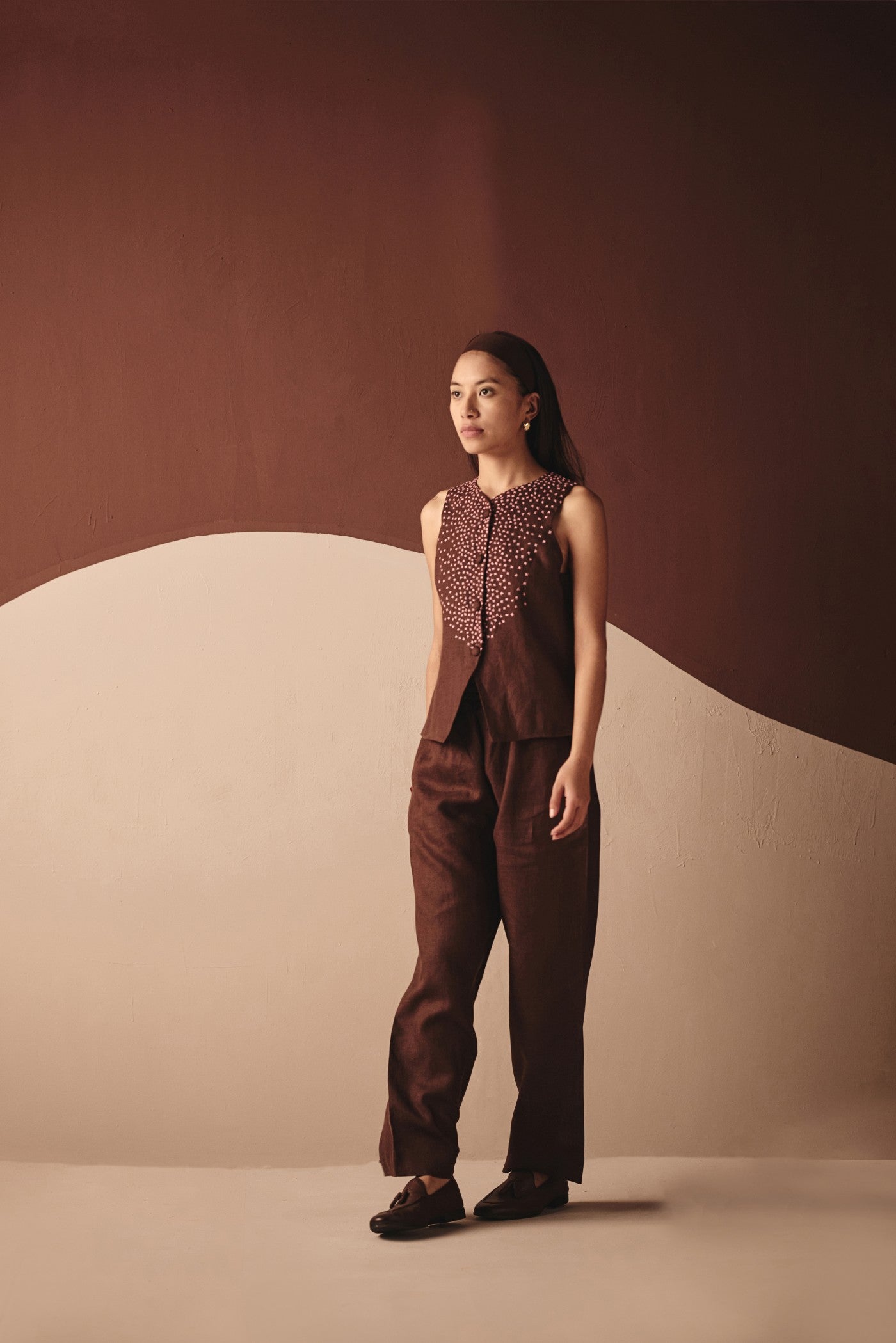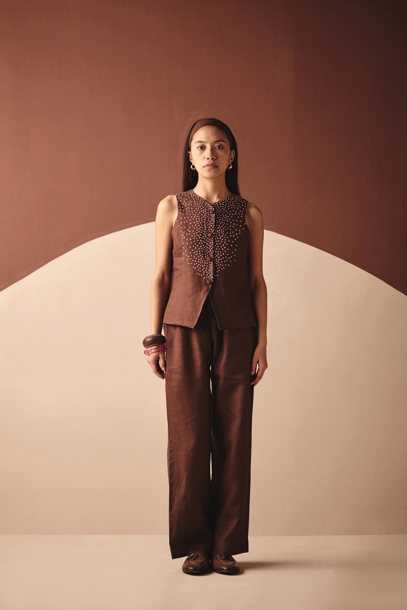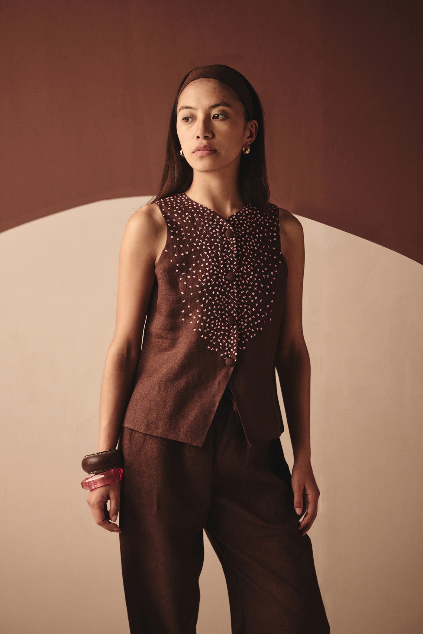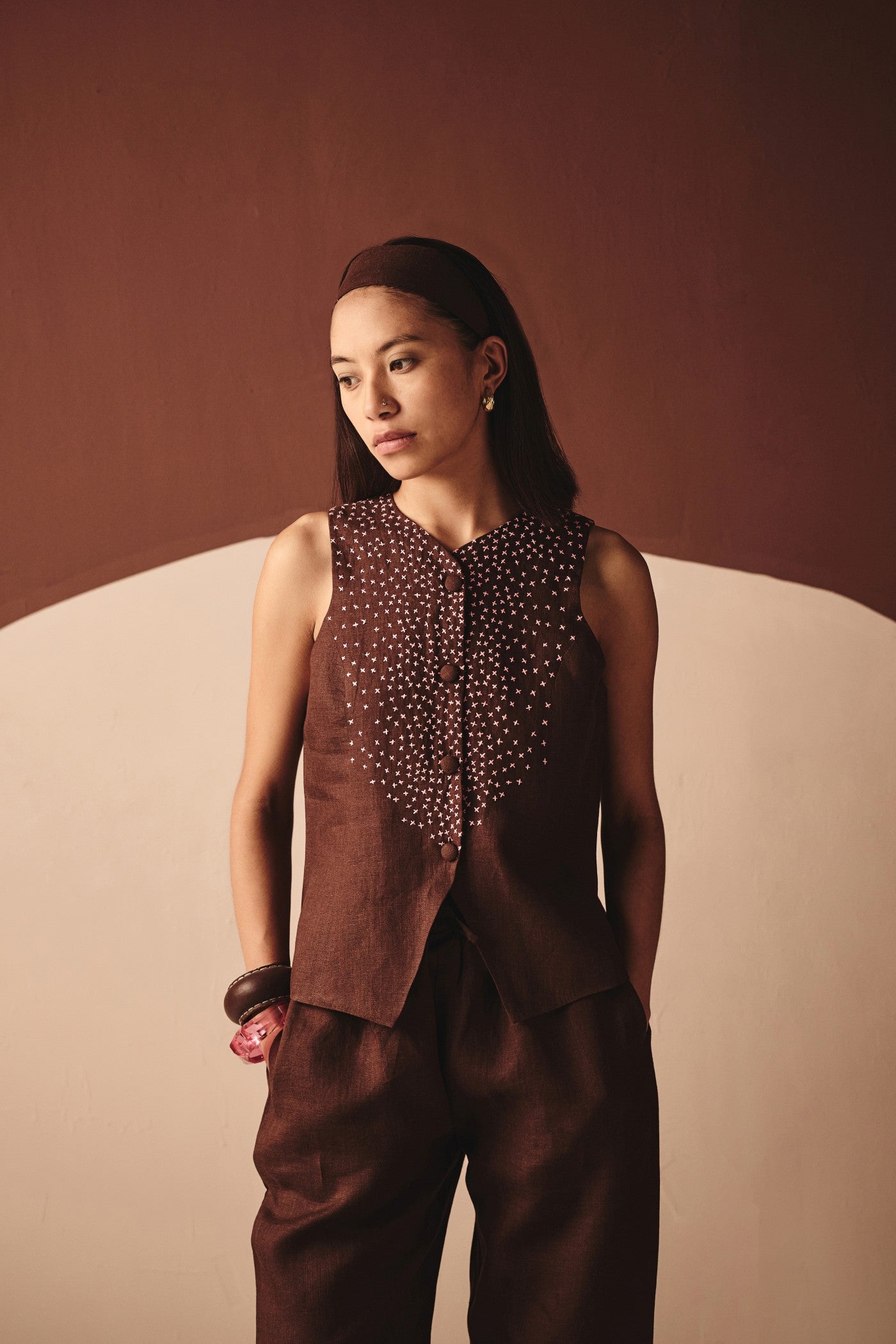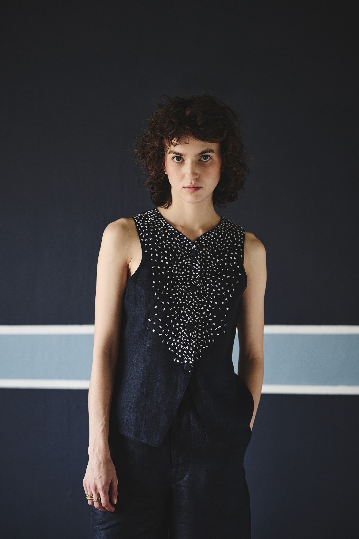 . Embroiderey on front . Sleeveless vest